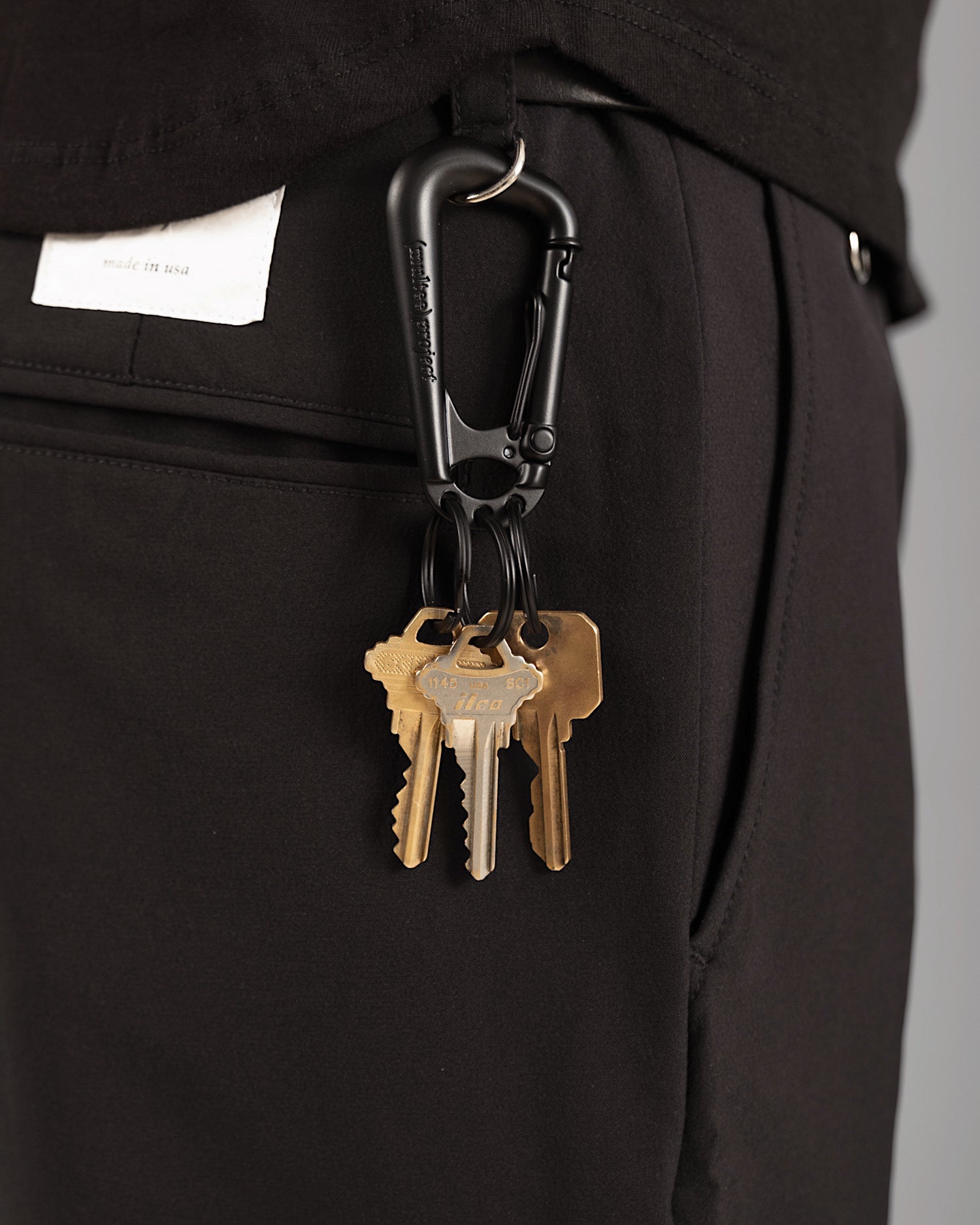 - Attached D-rings to the front and back belt loops